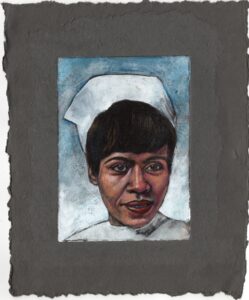 “Mother” (acrylic paint, ink prints, and oils) NFS – my first portrait painting