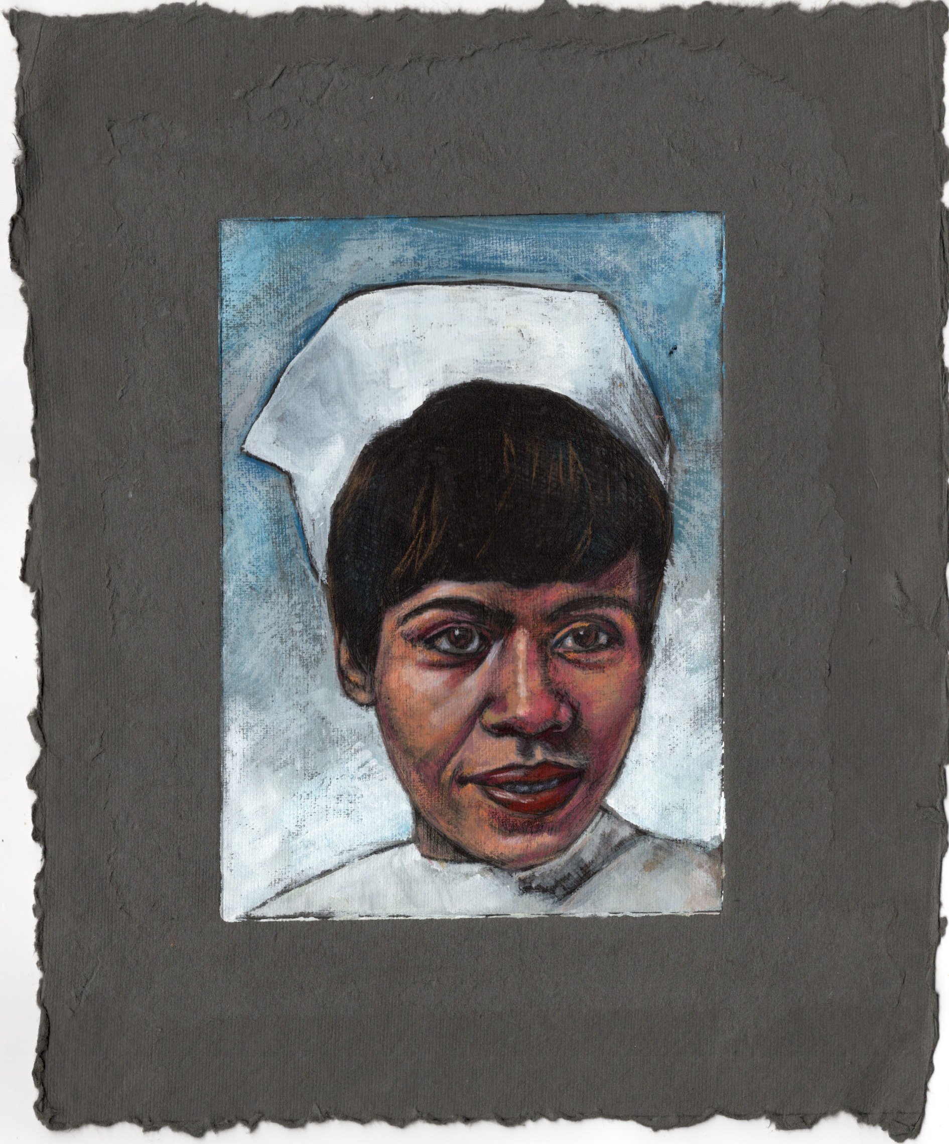 5×7 Portrait painting of my Mom with gouache over a intaglio print